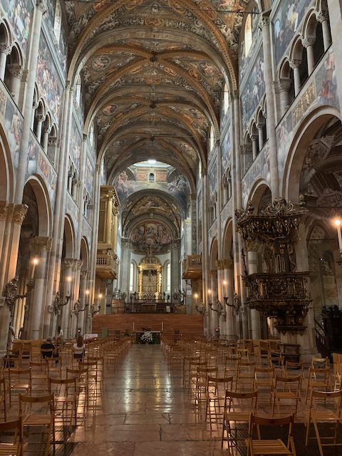 Late in the afternoon, Minne and I went alone on a last walk in Parma. This was a much nicer tour and I saw a lot to really love about Parma. We saw more medieval and renaissance parts of Parma as well as more interesting streets. We also stopped into the Cathedral of the city.
