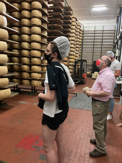 After the tour we had a cheese tasting of their three normal releases: 12 month, 24 month and 36 months. The 12 month is for shaving over a salad or pasta, not grating. It will still have a pronounced buttery flavor. The 36 month is for grating and serving as a intense hard cheese with pronounced nutty flavors. The 24 month, which is what we normally see in the stores is the hybrid: can be grated or shredded has a mild flavor but beginning to develop interesting flavors on its own.