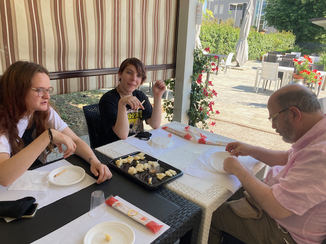 We left this morning (Monday 19), a day earlier to spend an extra day in Bologna. On the way out of the city I had arranged a tour of a cheese factory where Parmigiano is made. It was an amazing experience. Minne was able to take some great films of the process as well.