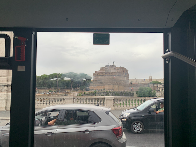 The bus first went by a busy tourist street which has an improvised series of three tents. The first tent said “Covid Test” the second two said “vaccinazione covid” The ride was amazing in the way it just banally went by amazing sites.