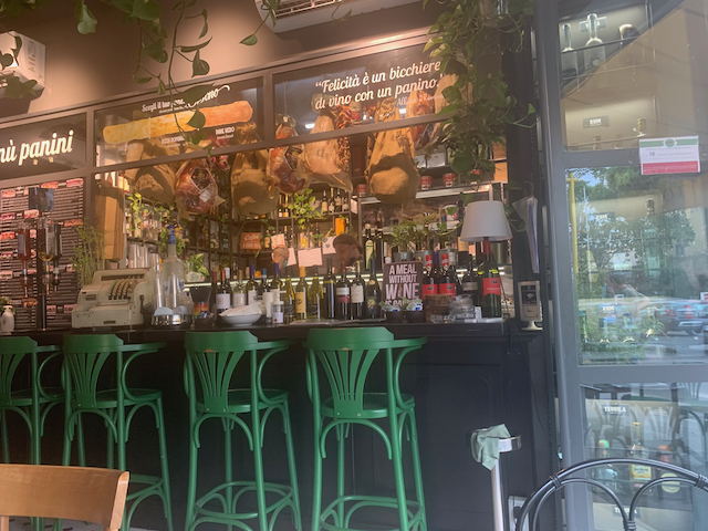 The room was not ready so she directed me to a caffe in this surprisingly rundown part of town by the St. Pietro Train Station. I realized Ieft my money in her apartment. So I went for a short walk to look fora ATM. After all it was cloudy and breezy—balmy even. So I found an ATM 45 minutes of walking later. Took out money at the current exchange rate and now foreign bank fees (thank you Capital One 360).