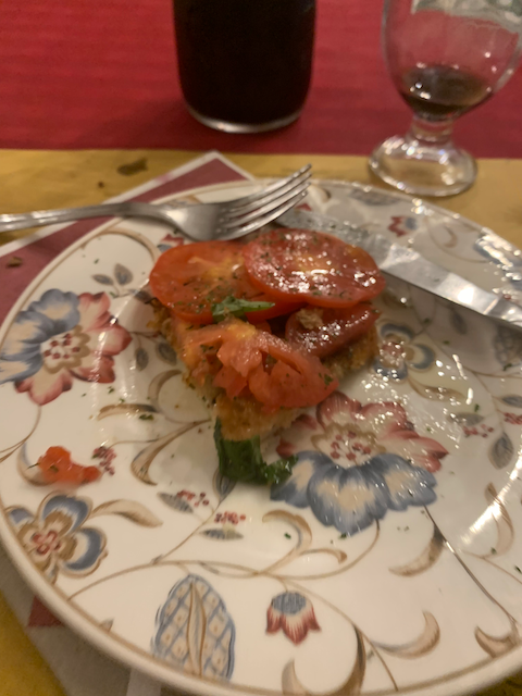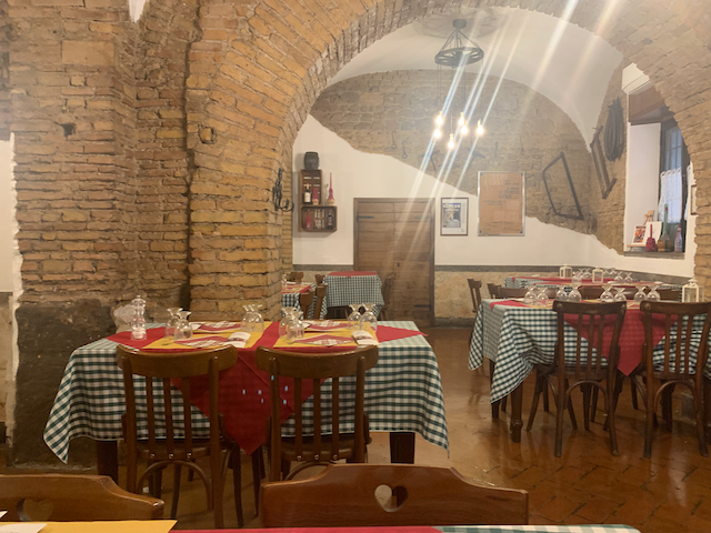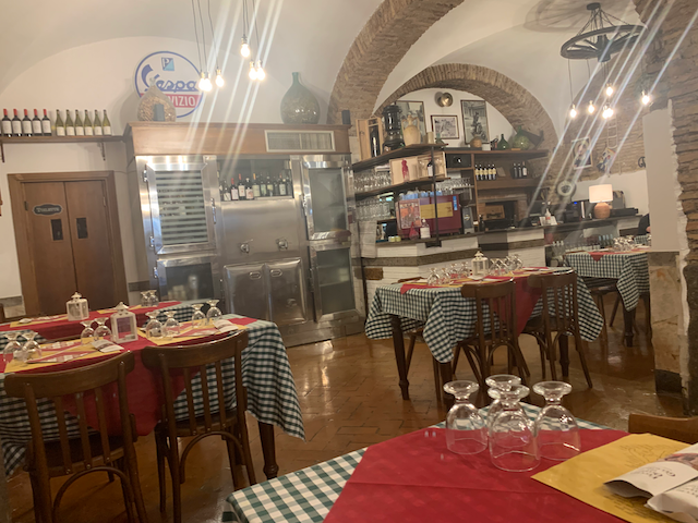 Lost my first bout in italian. Tried to order a local wine from Lazio. The waitress (co-owner with husband) insisted on giving me a half a liter of house wine for 4 euros. It tasted delicious.