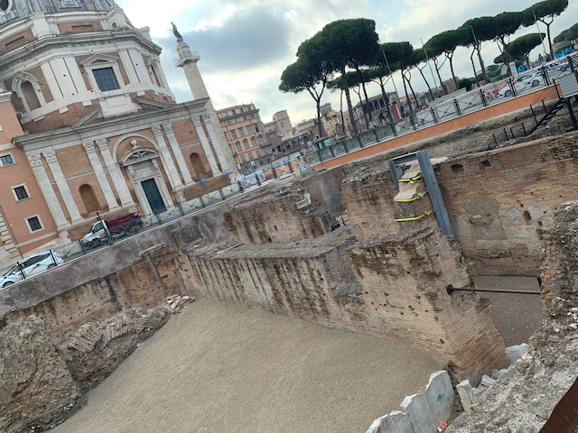 I walked from the house to the colosseum and it was a wonderful pleasant walk and saw many familiar landmarks and sundry roman ruins along the way. The weather was cool and balmy as it was early in the morning--that was the genius of getting up early and taking the earliest colosseum tour. SO I would not end up like Morris and I when we were walking through Rome in 100 degree weather and by the time we reached the Colosseum Morris was too overheated to see the Arch of Constantine. When he asked me to see it, he said it has a lot of things that would be offensive to Jews, so I played the J-card and opted to sit the in shade.