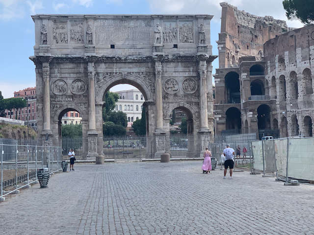 Then in the far off distance I saw my goal: Il Colosseo and stopped first for a luxurious visit to the Arch of Constantine and I hope somewhere Morris is smiling.
