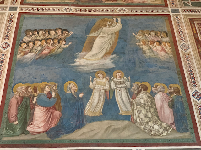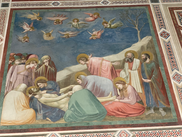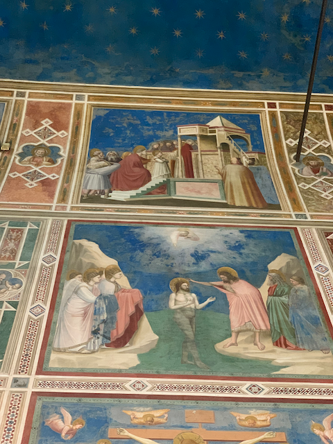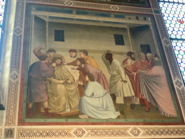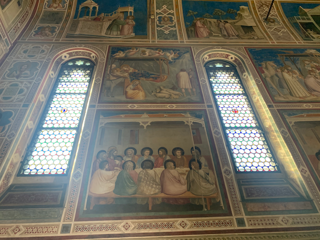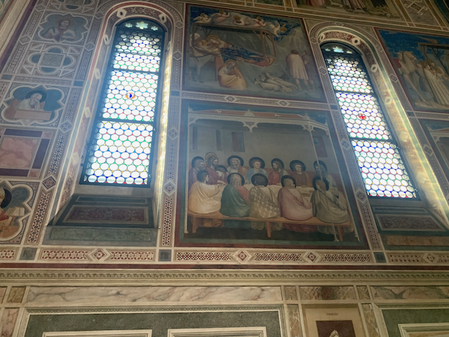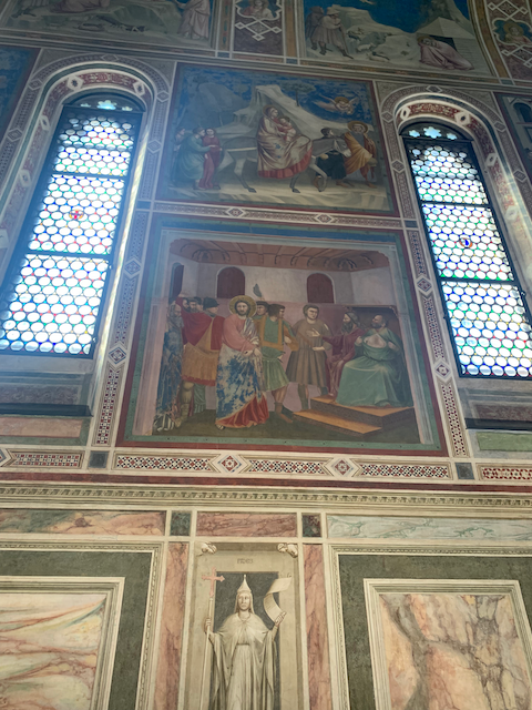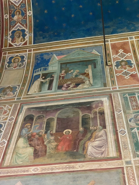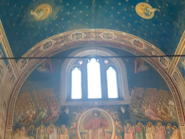 First with Minne and Esther, than alone with Esther we took a walk. The day started at one of the wonders of Western Art: the scrovegni chappel--the entire chappel was painted by Giotto (more on that at the end) now our last walking tour of Padua: