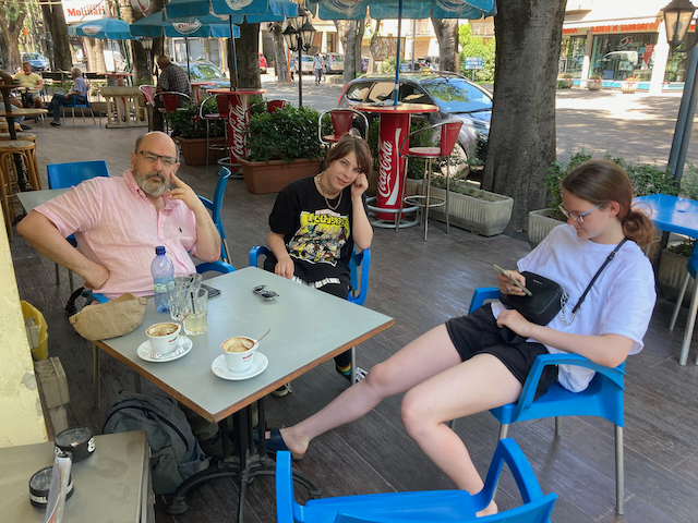 On our way to Bologna, we stopped in a small city called Vignola. It is the headquarters of Marsaschino Cherry maker Toschi. I almost went y their outlet until I realized I had more than a year’s supply at home (I only use them Manhattans and Whiskey Sours—I make a mean Whiskey Sour by the way). We stopped at a cafe for a drink. The coffee was quite excellent. I met a man there around 65+ and he wanted to talk to me about Holland, he saw the license plates of Minne’s car. I stumbled through my Italian and the worse it got the more encouraged he seemed to be to want to talk to me in every growing faster and more animated language. He did seem very kind at least by his tone of voice.