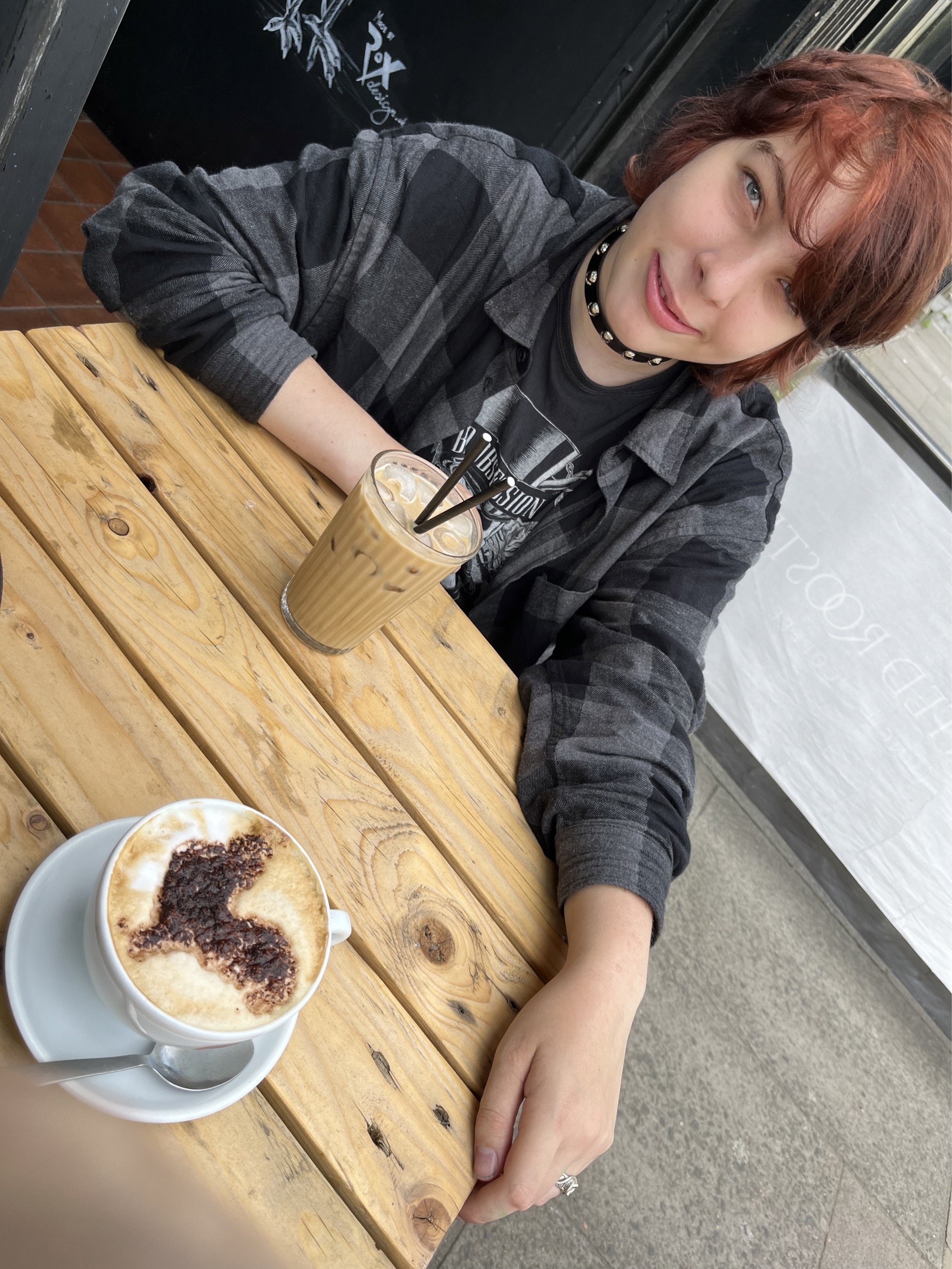 It is now Tuesday 2 days before we leave. We started the day with our morning coffee. We went to a coffee place called the rooster, and indeed I found a rooster painted in chocolate ontop of my cappuccino.