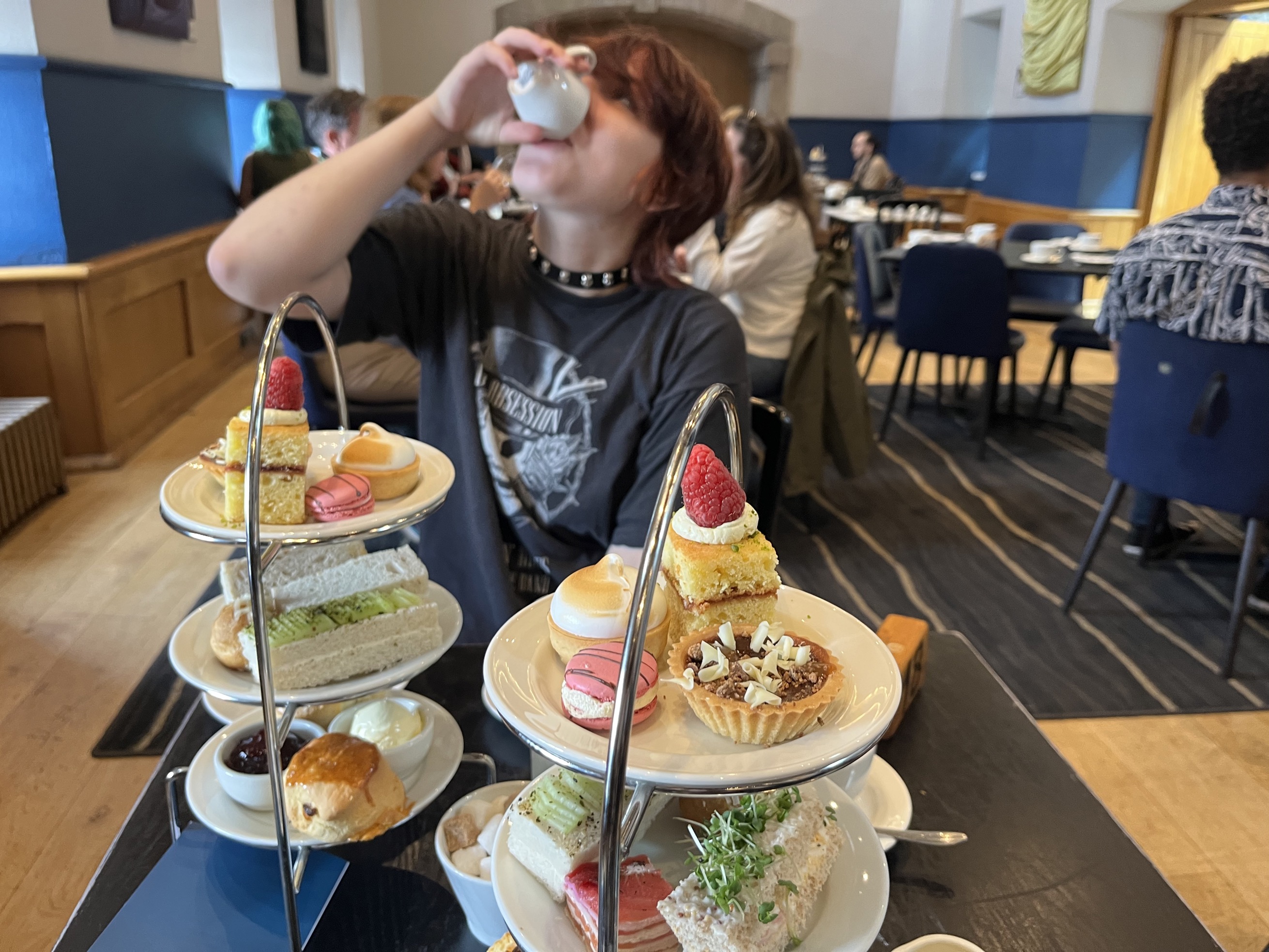 This does bring to one point, maybe I made this already but the scones in Scotland are uniformly delicious and bear little resemblance to their American counterparts—well most of them, tip my hat to Tartine in San Francisco. I had the earl grey tea which was disappointingly similar to the Earl Gray tea I usually drink from marriage freres—except the french counter part was significantly better. The food was definitely too much to eat and included 2 scones, finger sandwiches (eli got vegetarian ones) and no less than 3 desserts.