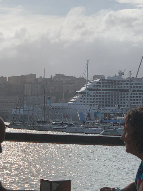I had a great start to the evening with a walk along the Antique Port and a aperitivo at a LGBT-dominated bar on the waterfront of the Ligurian sea. It’s a nice terrace but because Italians are heavy smokers it gets a little obnoxious after a while. And you can smoke on terraces and outdoor cafes (but not inside and luckily inside is an option in Liguria because it isn’t too hot). But this bar, Banano Tsunami, was only outside.