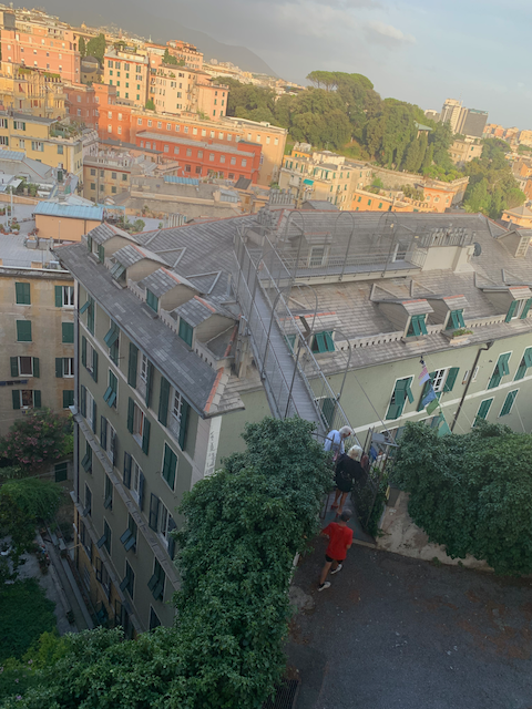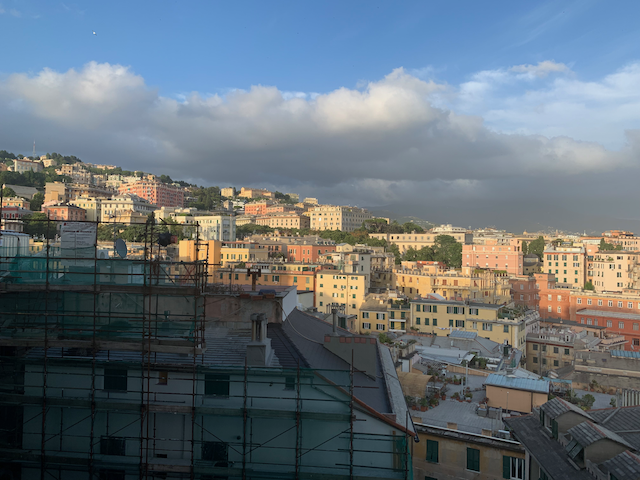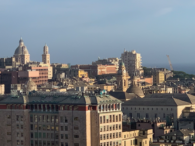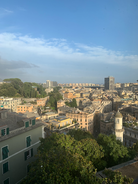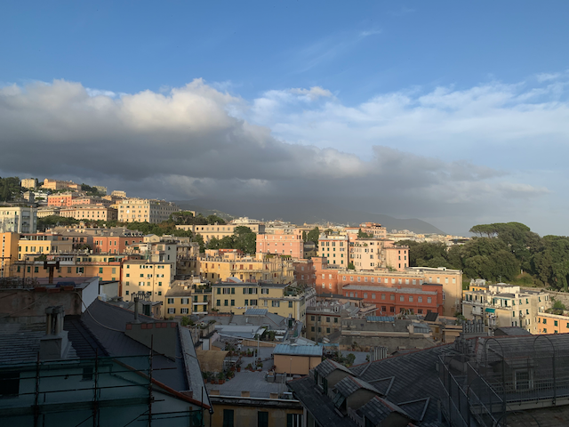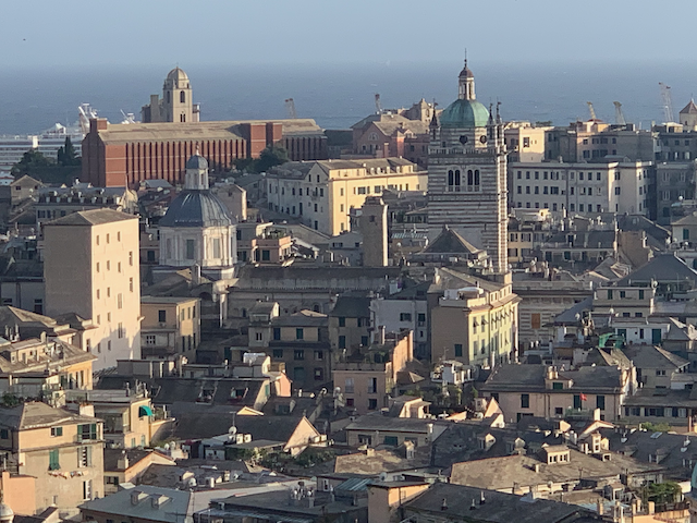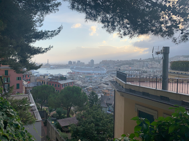 - So far in Genoa: it has been in the low 70’s and balmy. Today the high was 74 but quickly went down to 72 as a san Francisco-like late afternoon breeze came in. (This breeze was partly because I was in Castelletto up in the hills, more on this later…)