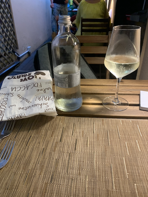 In taking my order I decided to have a glass of Prosecco to start and a bottle of the nice red wine and take the rest home. I did not recognize anything on the wine list and the waiter immediately suggested a Piedmont red, and shrugged at my suggestion a bottle and suggested a glass (for 5 euros) for me instead. I was touched with now something I see consistently on my travels in Italy and that is a restaurant’s refusal to upsell you with your wine selection; and often offer cheaper alternatives—they like to push their house wines at 4 euros a quartino (a ¼ of a liter, often 6-7 euros for the half liter)