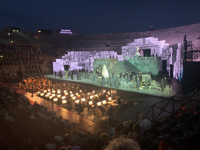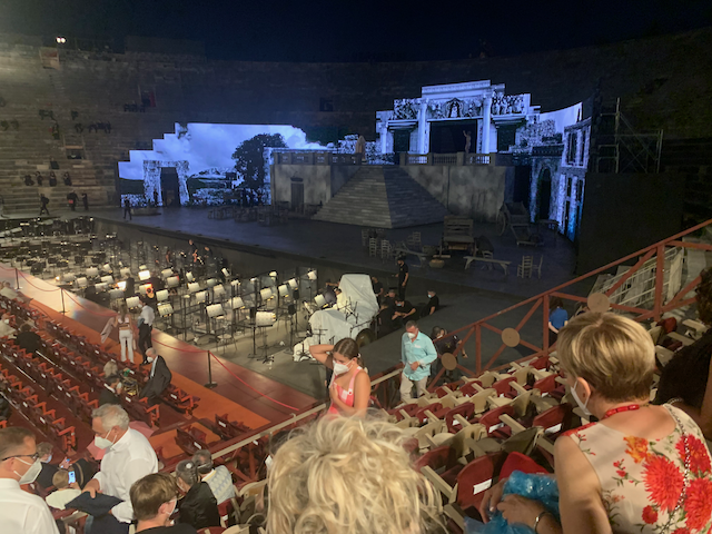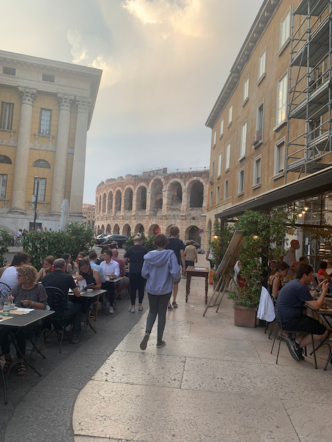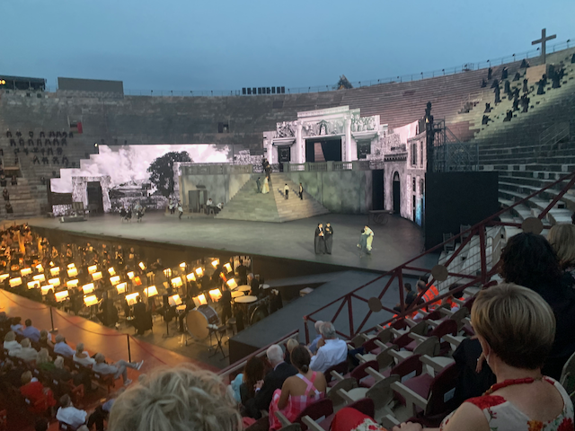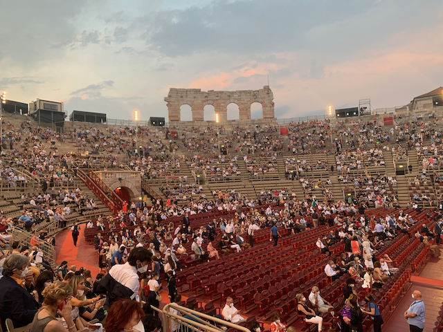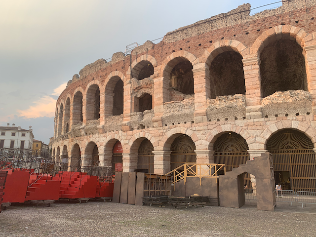 Then we left for downtown Verona to go to see Cavaleria and I Pagliacci at the famous Verona Arena, a Roman Arena retrofitted to hold operas and enjoy the legendary acoustics that the Romans once did.