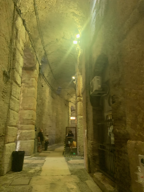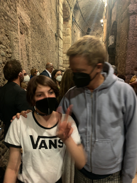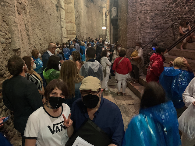 This is how the opera in the Arena ended. 10 minutes left in the first opera, Cavaleria Rusticana at midnight. There had been two rain delays and we were waiting inside as so many people (stretching back to the Roman Empire) had done before us, though probably without the masks.