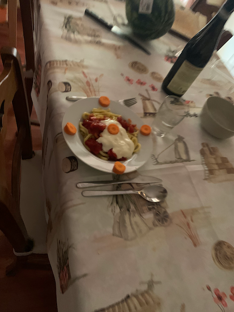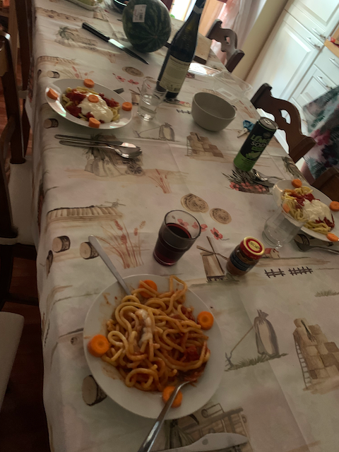 The evening started out well enough, our first night in Verona. Esther made a spaghetti (Bigoli the local fresh thick spaghetti) with a simple tomato sauce, stracchino cheese and anchovies (for the non-vegettarians.