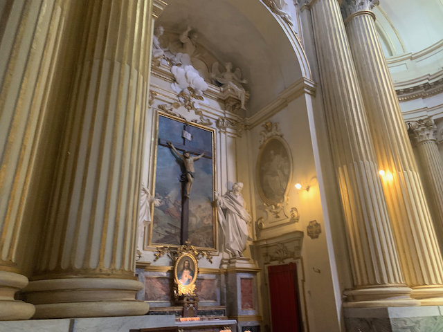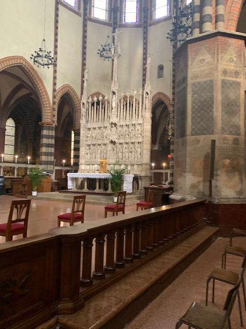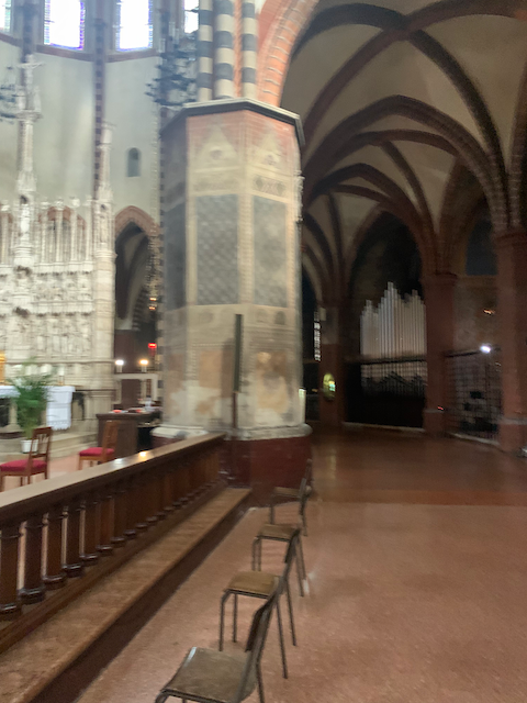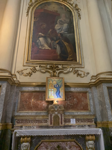 They also had a small medieval work encased in glass by the altar.