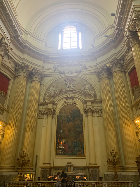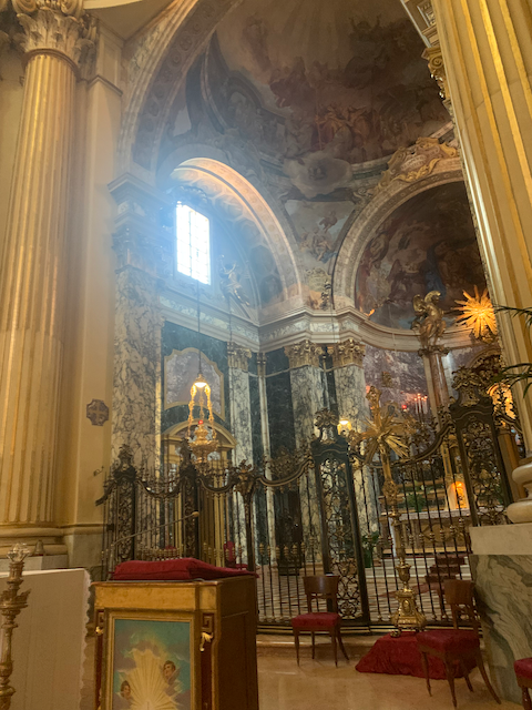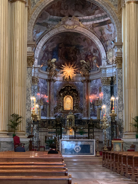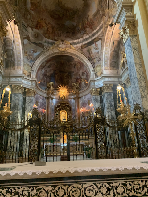 The interior of the sanctuary was a dazzling baroque structure (the building was started in the late seventheeth century but was completed by mid-eighteenth).