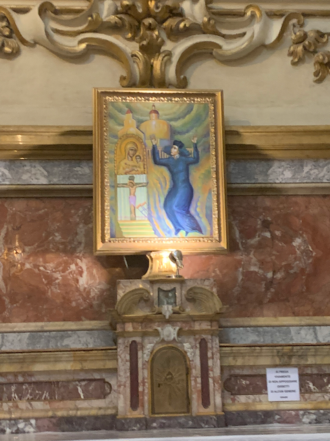 Among the baroque paintings there was a modern work that looked quite out of place, it looked like a mini-chagall...or at least a complete reversal on perspective that the other paintings do flip-flops to preserve.